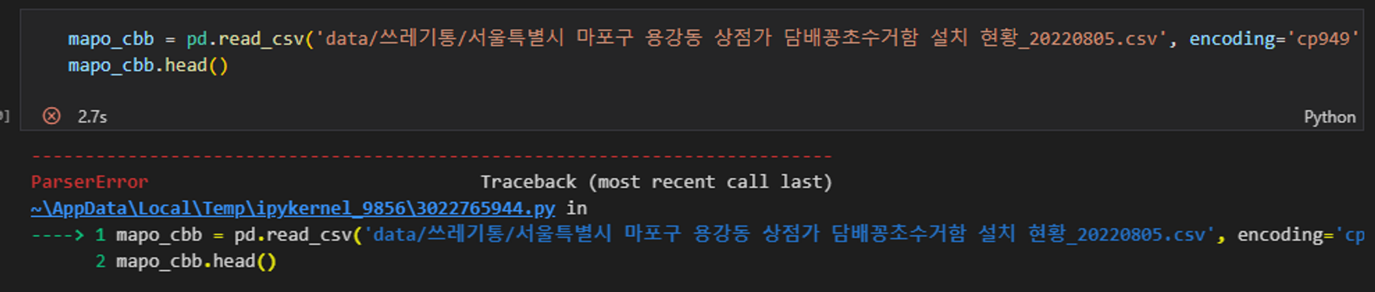 ParserError 발생 원인 파악