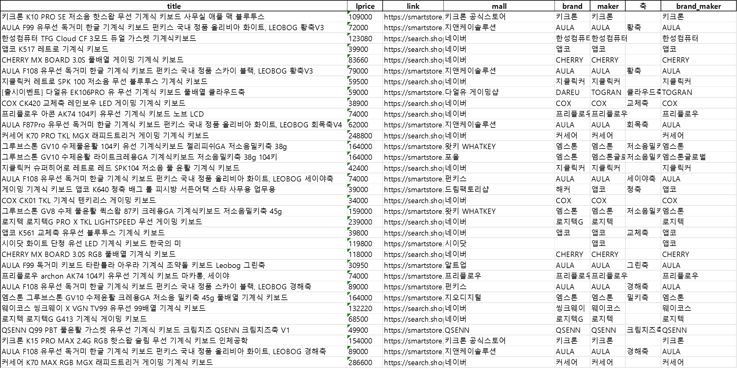→ 분석 주제 : ‘네이버 쇼핑’ 리스트를 통해 키보드 트렌드 확인