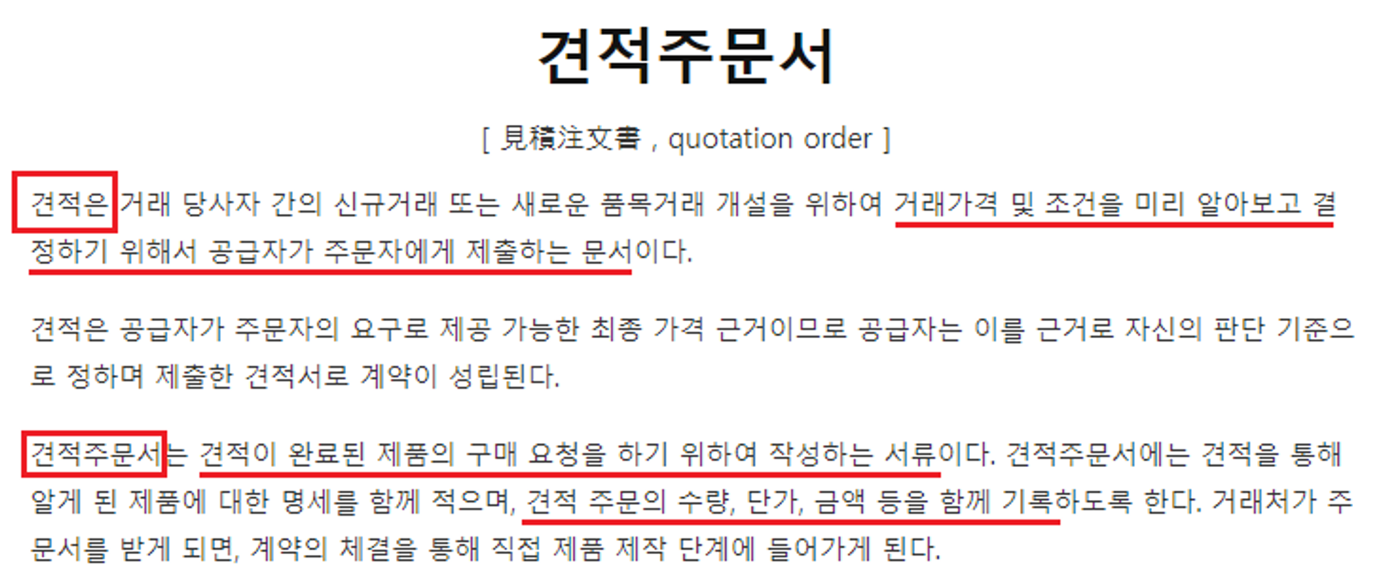 물건을 제조하면, 소비자 or 거래처는 견적서를 요청하고, 견적서에 따라 주문을 넣는다.