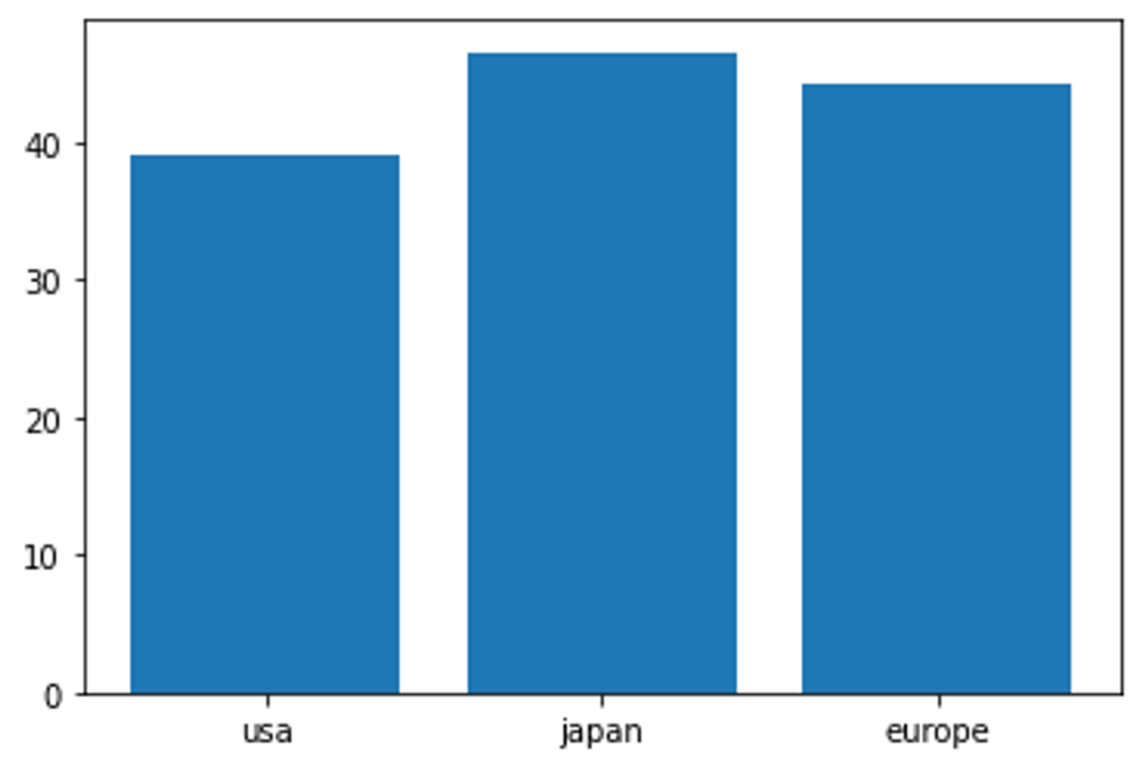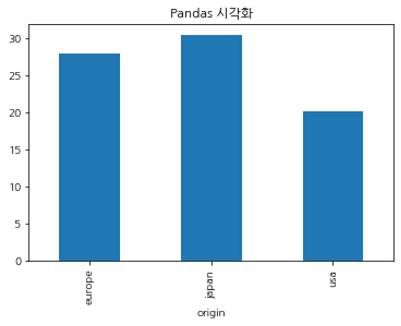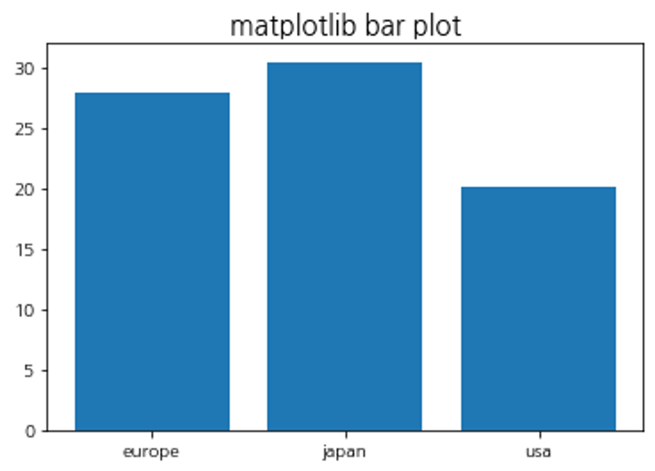| matplotlib | import matplotlib.pyplot as plt | plt.bar(df[”x축”], df[”y축”]) |