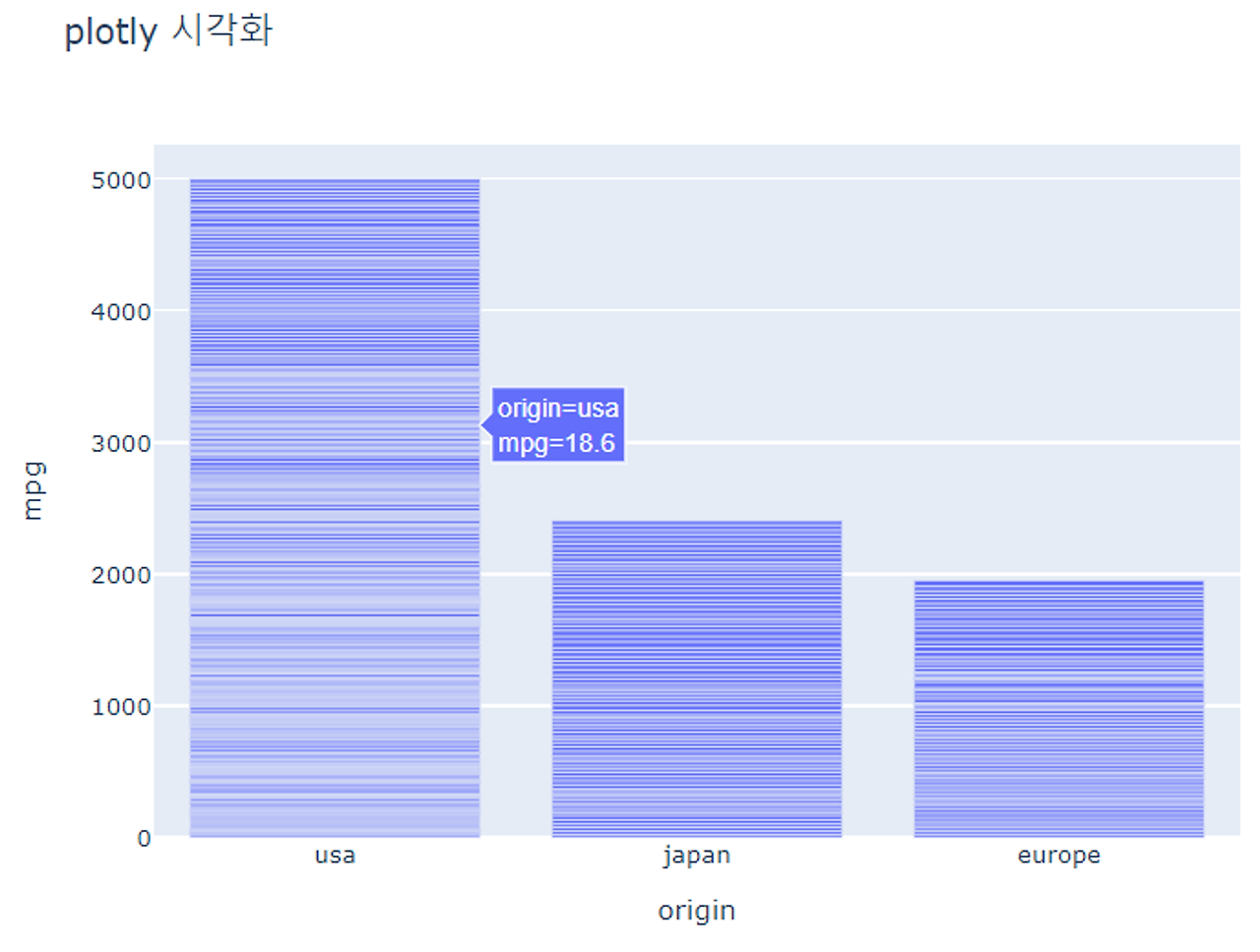 plotly는 파이썬에서 제공하는 대표적인 동적 시각화 도구입니다. 동적 도구는 그래프에 마우스를 올렸을 때, 특정 데이터 수치를 확인해볼 수 있는 상호작용이 가능합니다.