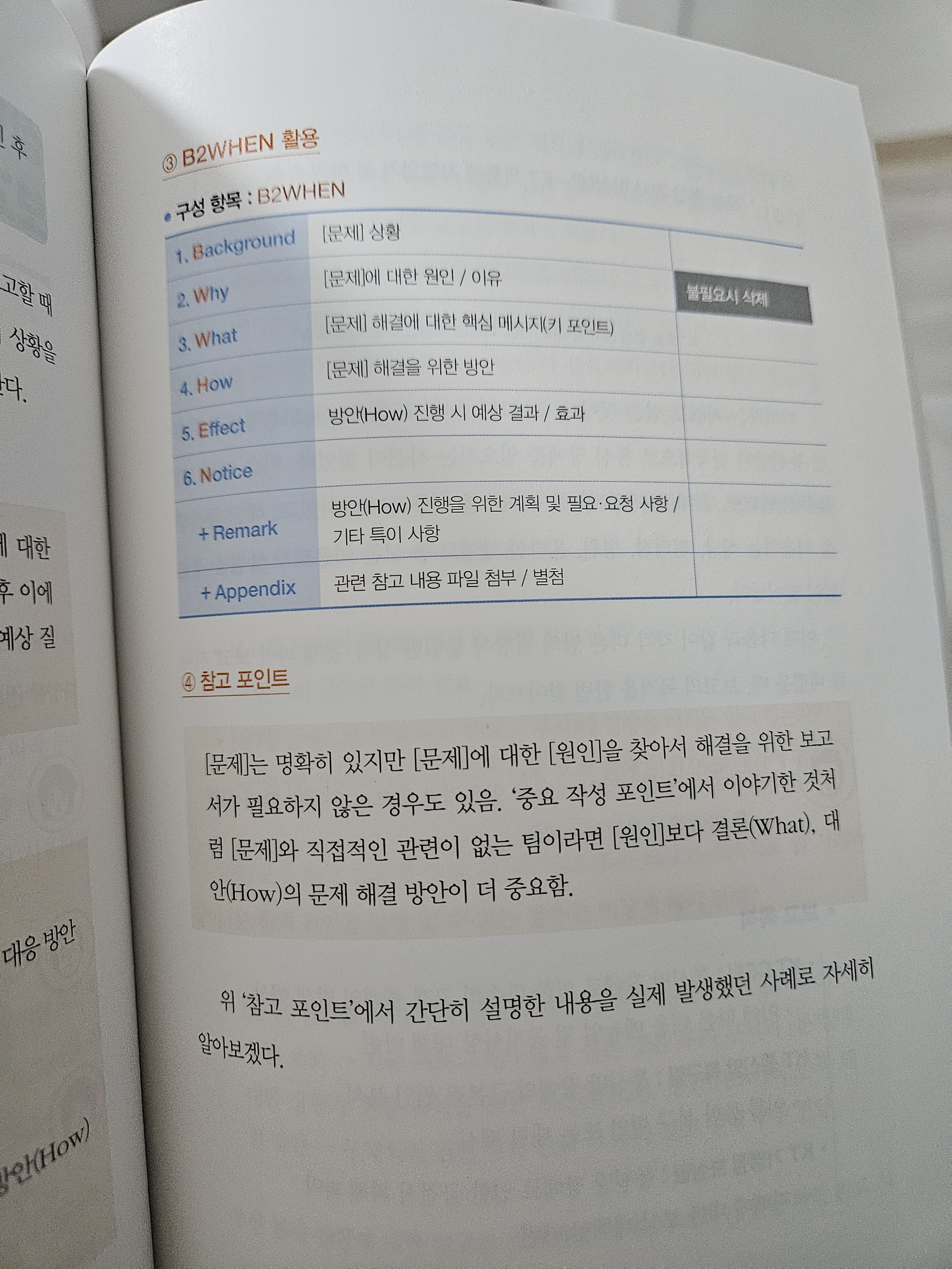 p.24 보고를 받는 사람은 내가 작성한 모든 내용을 자세하고 꼼꼼하게 정독할 시간이 없다. ... 꼭 필요한 내용을 포함했지만 장황하게 쓰여 있는 보고서는 좋은 평가를 받지 못한다.