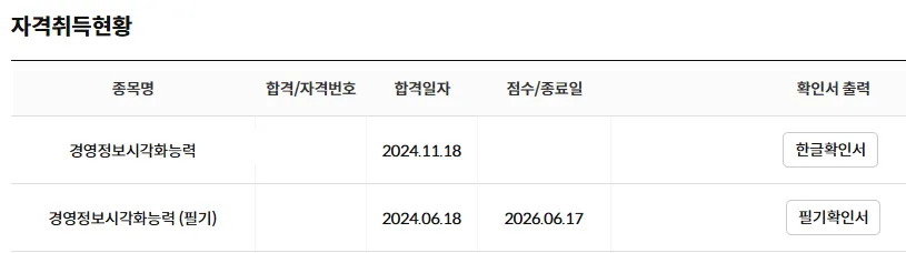 그러던 중, 경영정보시각화능력 시험이란 것이 생겼을 때, 지금 나 정도면 자격증을 딸 수 있는 수준일지가 궁금해졌고, 시험을 접수했다.